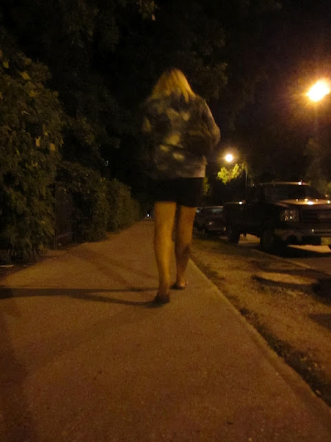 Walkin' the streets. I think I was Facebooking on my phone so I was unaware of her taking shots of my ass